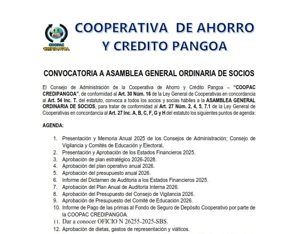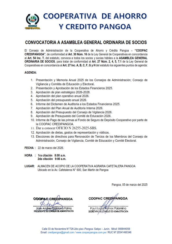 Tarifario de la COOPAC CREDIPANGOA